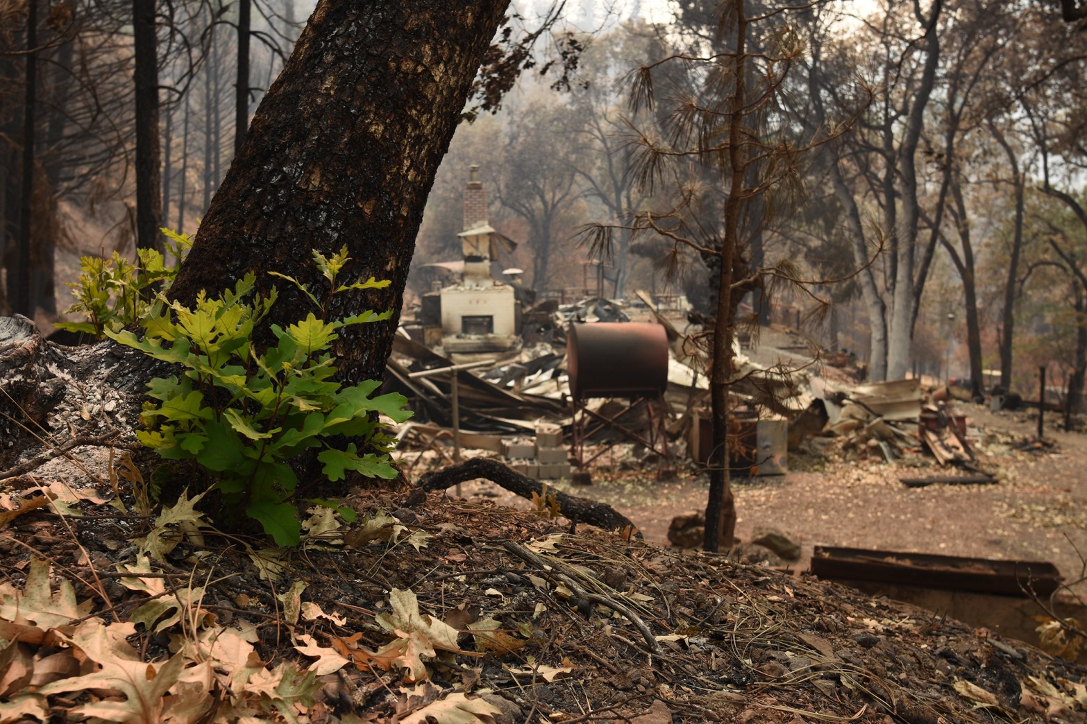 Today, the forested hills of French Gulch look like they’ve been given a buzz cut—blackened, branchless husks of trees stick out from the ground in scattered clumps. The hillside, normally hidden by verdant foliage, is stained black, rivulets in the rock exposed like veins.